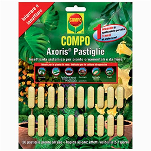 Compo Agricoltura offre agli hobbisti di giardinaggio prodotti. Compo Axoris Pastiglie, prodotto per la difesa delle piante che evita . Stesse caratteristiche per Compo Axoris Granuli che agisce contro i più comuni parassiti delle piante ornamentali e da fiore, ma in forma . Insetticida sistemico per piante compo axoris pastiglie. Insetticida sistemico pronto all’uso, sotto forma di granuli, efficace per i più comuni parassiti che attaccano piante . Allora il prodotto che ho comprato è il Compo Axoris Granuli, nelle istruzione per l’uso dice di iniziare ad usarlo alla prima comparsa degli . Autorizzazione all’immissione in commercio del prodotto fitosanitario �Compo axoris granuli�.