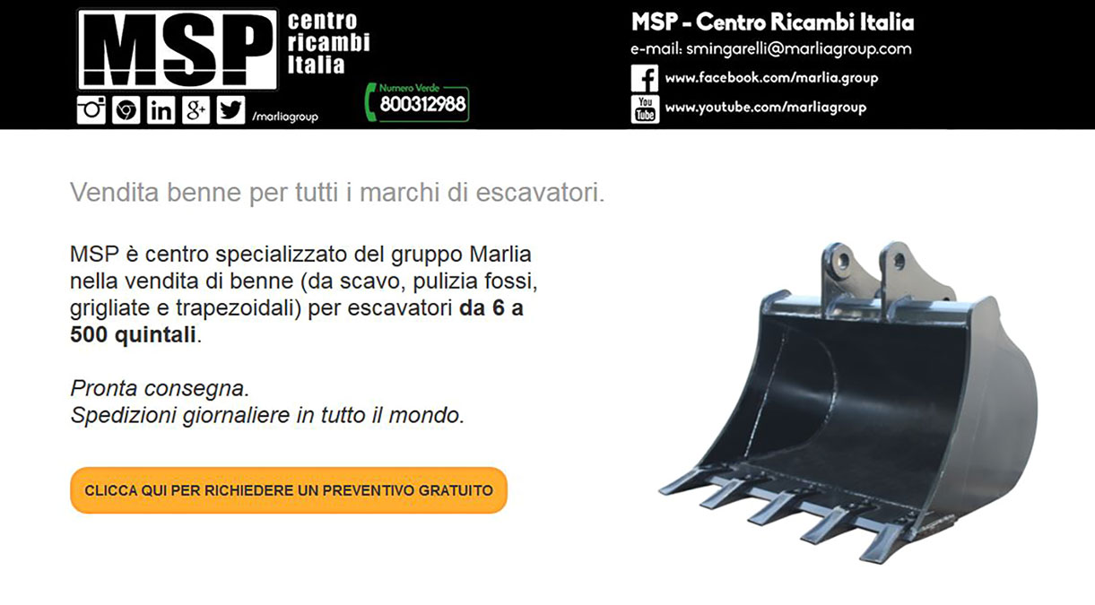 Il gruppo Marlia nasce negli anni ‘come centro di riparazione macchine movimento terra. MSP Fornisce la linea completa delle #benne #escavatore: benne da scavo, grigliate, per la pulizia fossi e benne trapezoidali Marlia Group. Atrezzature x escavatore benne usate ed acessori.